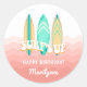 Pink Surfs Up Surfboard Birthday Sticker