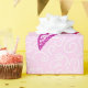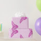 A repeating pattern of swallowtail butterflies on textured light pink background.