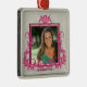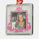 This trendy square sweet 16 birthday photo premium ornament has a hot fuchsia pink swirl design around a frame in the centre. There is a faded grey floral background. In the middle, you can easily customise this with your photograph. At the bottom, Sweet 16 is written.