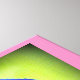 hand-drawn pink heart with swirls on green background