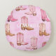 Pink Tan Cowgirl Boots Birthday Round Cushion