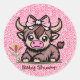 Pink Tan Highland Cow Girl Baby Shower Classic Round Sticker