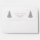 Envelope design with a vibrant fuchsia / pink / purple tartan check liner and the name / address flanked by a watercolor Christmas tree ornately decorated in the same colours. The tartan pattern was made digitally from my own watercolor stripes. The tree and ornaments were also hand painted by me before being scanned and combined digitally. I have invitations, holiday cards, gift tags and other items that match these envelopes.
