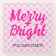 Pink tartan Christmas Merry Bright Family name Glass Coaster
