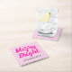 Pink tartan Christmas Merry Bright Family name Paper Coaster. Cute elegant Christmas Winter New Year festive Party Supplies. Beautiful Christmas pattern Light pink plaid look by PLdesign.