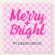Pink tartan Christmas Merry Bright Family name Paper Coaster
