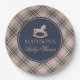 Pink Tartan Plaid Rocking Horse Baby Shower Paper Plate
