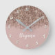 Pink Taupe Bronze Gold Glitter Glam Girly Chic Round Clock