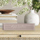 Elegant desk nameplate features your name, title, or choice of personalisation in elegant white calligraphy script lettering on a dusty neutral pink taupe background.