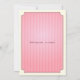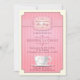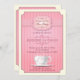 This invitation for a bridal shower tea party is just the thing to send the bride off in style. A ribbon and buckle at the top of the invitation introduce the party theme. Customised party details print against striped pink background with the RSVP printing below the cup and saucer. The bride's name stands out between two ornate borders. Add additional information on the reverse or delete the placeholder text to leave the reverse blank. Available with matching products.