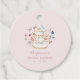 Show your gratitude with our Blush Pink Wildflower Bridal Tea Party Round Favour Tag with Thank You Message on the Back. Adorned with stunning hand-painted watercolor florals in deep purple, dusty blue, and blush pink with sage greenery, these tags beautifully complement cream and gold floral teacups and saucers on a blush pink background, with a cute pink butterfly adding charm. Each tag is designed to create a cohesive and enchanting atmosphere, ensuring your guests feel appreciated and cherished.
