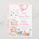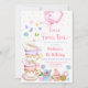 This adorable design features watercolor tea cups with pink floral and faux gold glitter embellishments.
