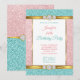 Pink Teal Blue Gold Glitter Diamond Birthday Party Invitation
