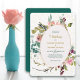 This pretty wedding invitation features a gold oval offset double frame with a watercolor pink, burgundy, and teal floral border. There is a subtle teal watercolor blotch at the left of the pink rose that adds modern interest. Your custom text is in gold and teal green at the centre of the frame. The images and text are placed on a white background that has a gold confetti overlay.The back of the invitation is solid matching teal. Perfect for a floral wedding theme at any time of the year. *If you like the design but have trouble fitting your preferred wedding text in, just give us a shout through our store e-mail address. We are always happy to help!
