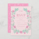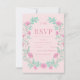 Contemporary and romantic, these RSVP response cards for a spring/summer bohemian rustic retro wedding feature a beautiful and vibrant pastel pink and teal green floral wreath. The botanical and nature-inspired design adds a touch of elegance to your wedding stationery ensemble.