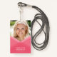 A modern photo badge featuring a pink layered geometric design on the front where you can also add your photo and a teal colour back side. Perfect as an office badge for your staff and also a great way to introduce yourself at meetings or events.