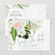 Pink, teal + orchid tropical floral save the date announcement postcard