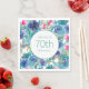 Pink Teal Watercolor Floral 70th Birthday Napkin