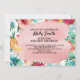 Elegant botanical pink, teal, and yellow floral and pink watercolor on white baby girl first birthday party invitation.