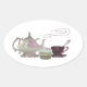 Pink Teapot, Teacup and Cupcake Art Oval Sticker