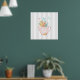 Pink Teapot with Flowers & Butterflies Grey Stripe Poster