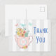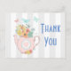 Pink Teapot with Flowers & Butterflies Thank You Postcard