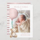 Announce the arrival of your little girl with this adorable pink teddy bear birth announcement card. Featuring a sweet watercolor bear, pink balloon with eucalyptus details, and a full photo layout, this design captures the charm of your newborn’s first moments. Personalise with baby’s name, birth date, and stats — perfect for sharing the joy with family and friends.
