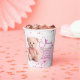 Celebrate your baby shower in style with this adorable pink teddy bear paper cup featuring soft blush tones, heart confetti, and customisable text. Perfect for your kid's baby shower or any girl-themed event, this personalised cup adds a cute and coordinated touch to your party tableware. Disposable and durable, it’s ideal for drinks, punch, or sweet treats!