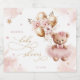 Embark on a journey of sweetness and anticipation with our adorable item, where every detail is designed to fill hearts with joy and excitement. This charming design showcases a darling baby bear adorned in a beautiful pink dress, clutching golden balloons adorned with delicate floral accents in her paw. Against a backdrop of soft pastel hues, each element exudes whimsy and charm, setting the stage for a celebration filled with love and precious moments. With its delightful imagery and heart warming details, the items promises a baby shower that's as adorable and memorable as the baby bear herself. Matching items available.