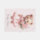 Small fleece blanket with a cute teddy bear wearing a pretty pink dress and holding a bouquet of pink flowers. Customise with your child's name.