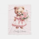 Pink Teddy Bear Flowers Child's Name Fleece Blanket