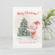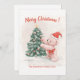 Pink Teddy Bear Retro Christmas Card