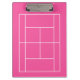 Pink tennis court clipboard for coach or team captain. Personalise with your own business name or school. Custom template, change into any colour. Handy for club trainer, kid's league, tennis lessons and more. Custom from holder with clip. Useful for explaining tactics, strategy, coaching, drills and more. Modern tennis ball logo on the back.
