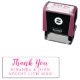 Pink Thank You Elegant typography self inking stamp. Custom brush script lettering logo stamp for wedding party, reception, bridal shower, baby shower, birthday, anniversary and other occasions. Stylish template for luxury invitations, chic response cards, pretty stickers and labels. Add your own bride and groom names plus date below the handwriting. Enlarge the stamp area from small to big if you want to put more text or personalised names. Beautiful DIY accessories and trendy supplies for marriage, engagement and other events. Classy handwritten stamping prints. Available in different colours like violet purple, pink, blue , green, black etc. Play with spacing and letter size to get the perfect look.
