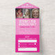 Bold simple graphic pink and white photo template all-in-one 55th birthday invitation. Personalise this detachable milestone birthday invitation with your own birthday party event details, and three different photos of your birthday girl. Invite comes with a simple RSVP detachable reply card where you can also request a song to dance to or ask for any dietary or special requirements if required. Simple three photo side by side design for you to place your now and then photos. Other colours and matching items are available. © Original design by Sarah Trett for www.mylittleeden.com on Zazzle.