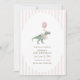 Pink Three Rex Dinosaur balloon Third Birthday Invitation