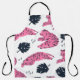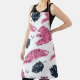 Pink tiger lies in various positions. Tropical leaves. Hand drawn vintage seamless pattern.