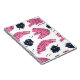 Pink tiger lies in various positions. Tropical leaves. Hand drawn vintage seamless pattern.