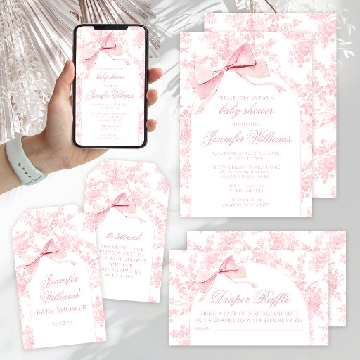 Pink Cute Toile Floral Arch Bow Baby Girl ShowerDesigned by Ramune Freze