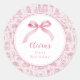 Pink Toile Coquette Bow 1st Birthday Girl Classic Round Sticker