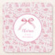 Pink Toile Coquette Bow 1st Birthday Girl Square Paper Coaster
