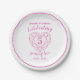 Pink tourmaline celebrating 5 years of love wedding anniversary party paper plates. Simple outline heart stone line art graphics on white 5th pink tourmaline Wedding Anniversary paper plates. Personalise with your own wedding party details. The 5th anniversary is associated with the gemstone pink tourmaline and the heart symbolises love. Graphics and design by Sarah Trett for www.mylittleedenweddings.com on zazzle.