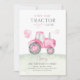 Pink Tractor & Balloons Birthday Party Invitation
