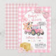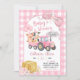 Pink Tractor Gingham Coquette Farm Baby Shower Invitation