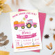 Pink Tractor Pumpkin Girls Autumn Birthday Invitation