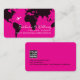 ... for travel and tour related services, a hot pink business card with the image of a black map of the world.