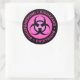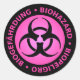 Biohazard - Biopeligro - Biogefährdung - trilingual biohazard warning sticker in pink and black. Sheets of six 3" stickers or twenty 1.5" stickers.
