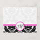 Pink Trim Black Damask Rehearsal Dinner Invitation Postcard