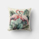 Cute Tropical Pink Flamingos and monstera leaves pillow cushion