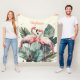 Cute Tropical Pink Flamingos and monstera leaves fleece blanket